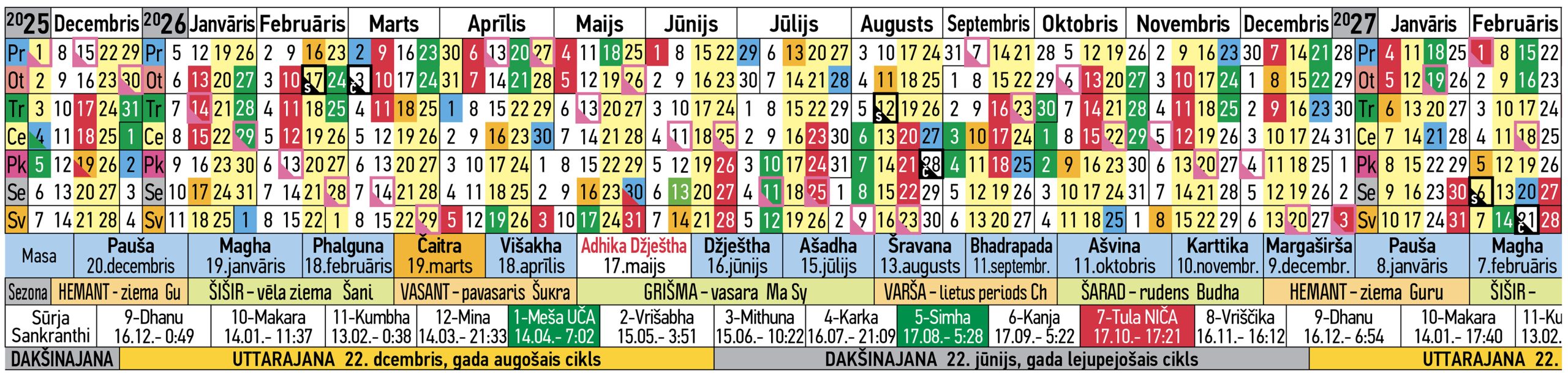 | 12-Mina / Zivis | 25-P.Bhadra | Ma121 | 2.apr – 6.apr 2026 | PuškaraNavamša |