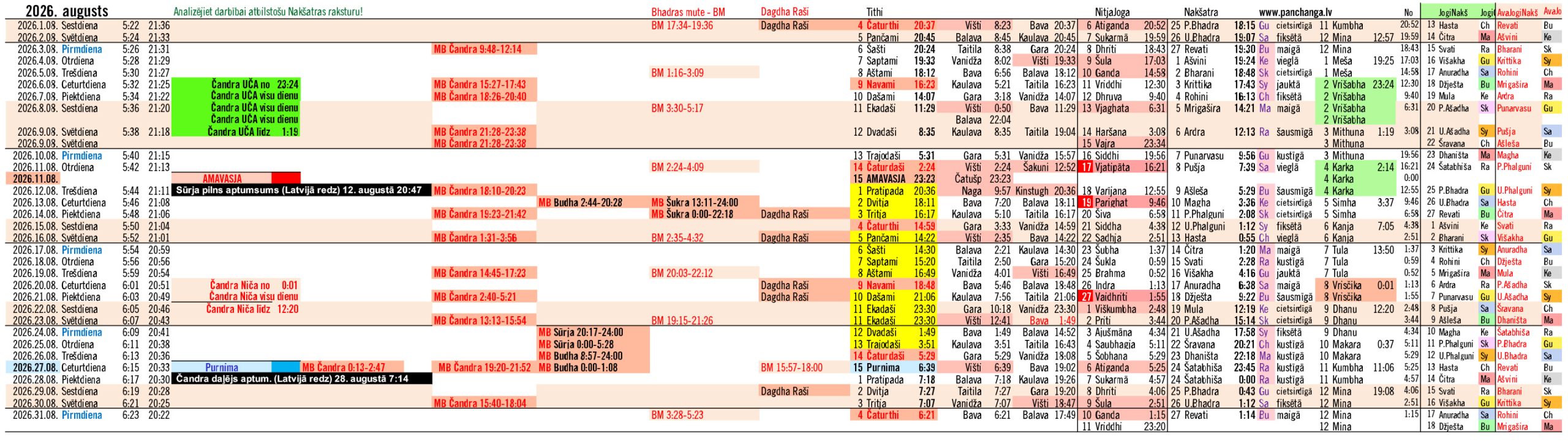 | Sūrja | 5-Simha | 24. aug. 20:17 līdz 26. aug. 5:28 |