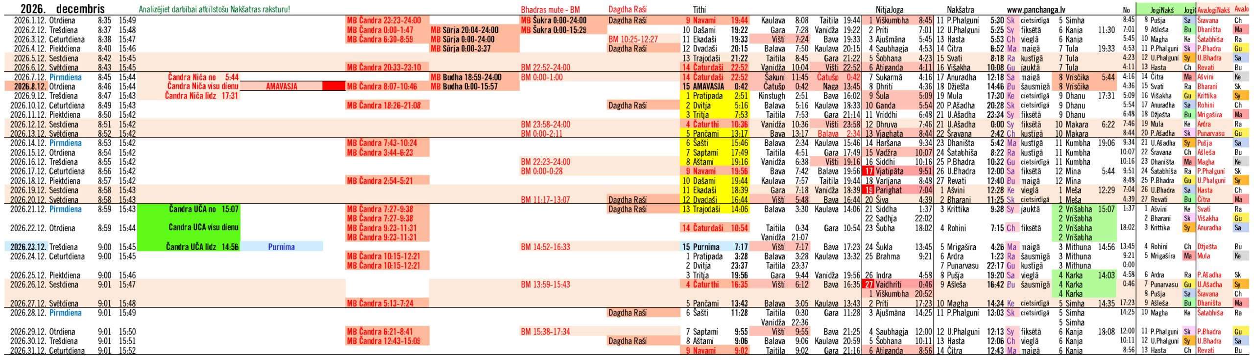 | otrdiena 16.dec. 0:49 9-Dhanu | 15. decembris no 18:25 līdz 16. dec. 7:13 |