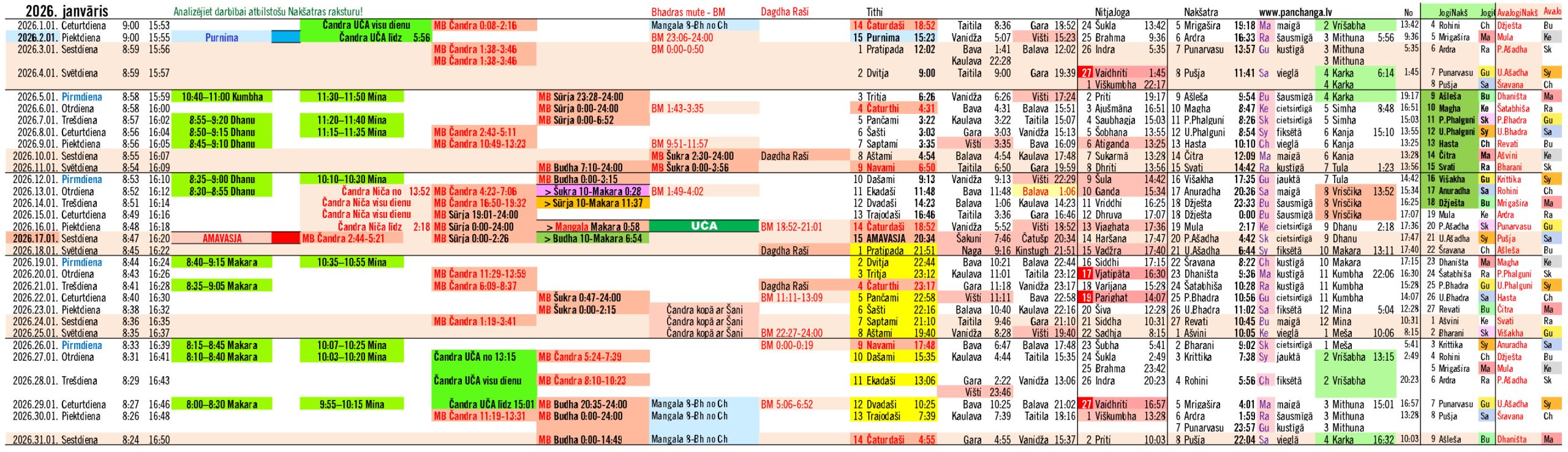 | 10-Makara / Mežāzis | 22-Šravana | Ma107 | 10.feb – 14.feb 2026 | |