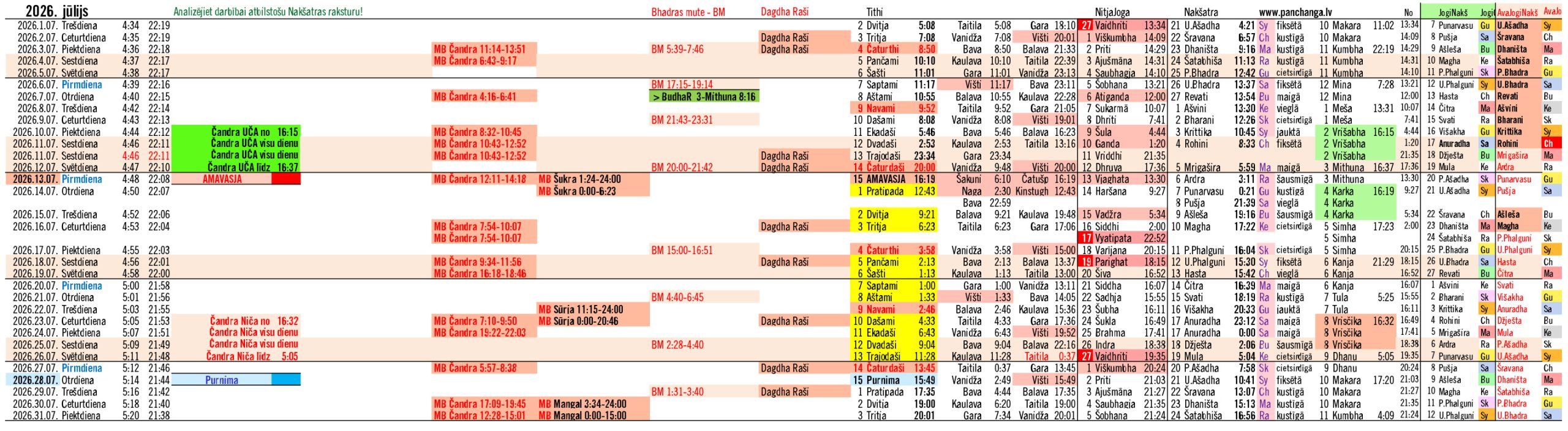 | Šukra | 5-Simha | 13. jūl. 1:24 līdz 14. jūl. 6:23 |