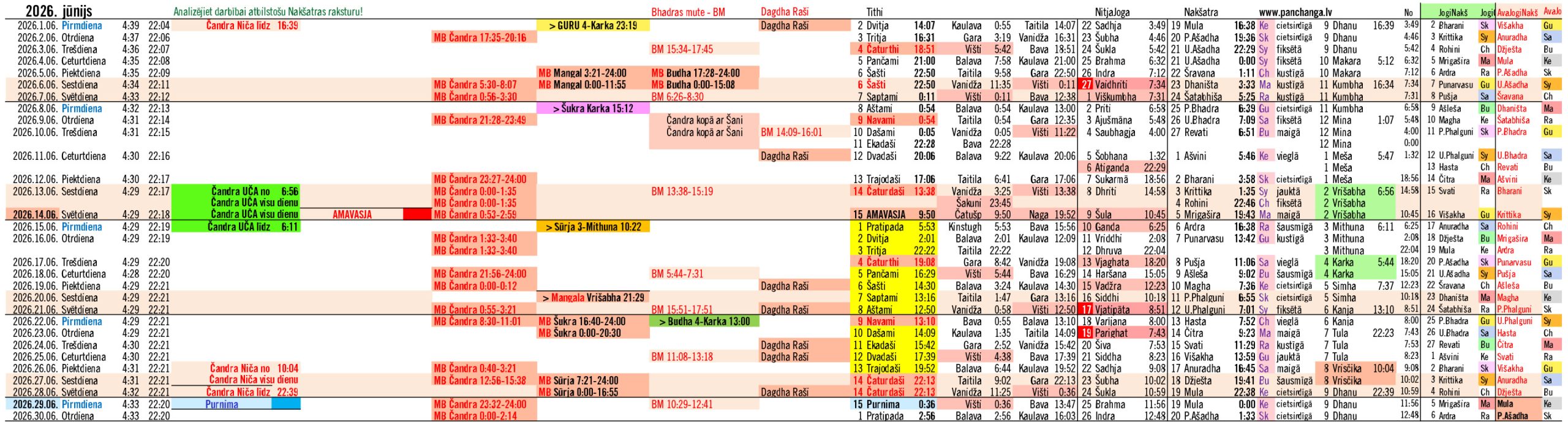 | Sūrja | 3-Mithuna | 27. jūn. 7:21 līdz 28. jūn. 16:55 |