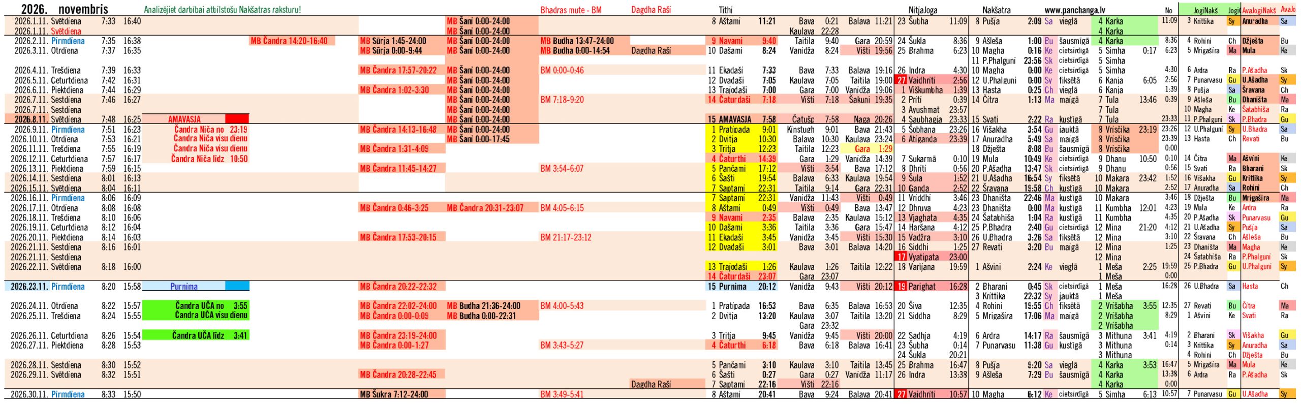 | Budha | 7-Tula | 2. nov. 13:47 līdz 3. nov. 14:54 |